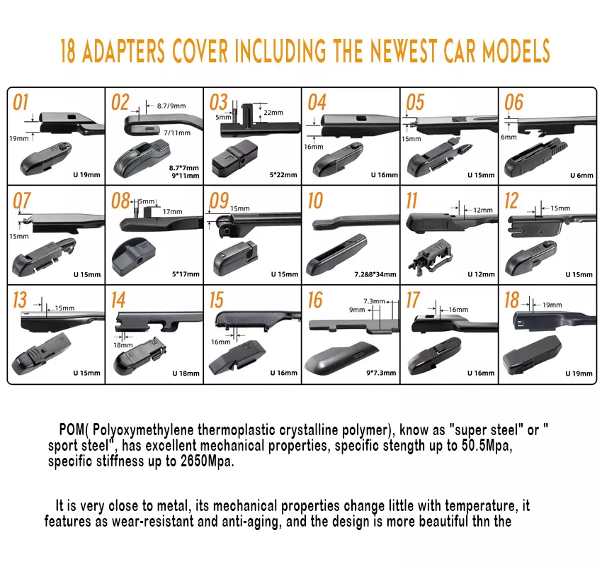 | Adapters/ Clips | 18 adapters / clips for different wiper arms |